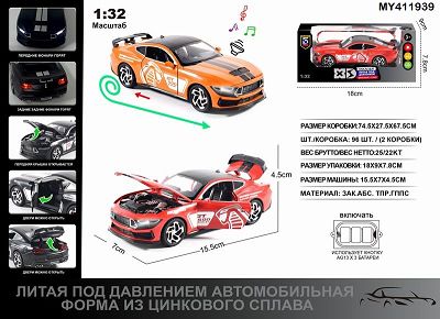 俄文1:32压铸锌合金灯光音效福特野马GT500车模