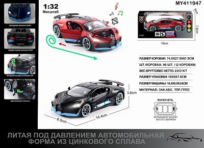 俄文1:32压铸锌合金灯光音效布加迪车模