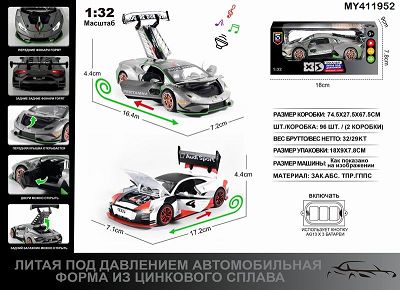 俄文1:24压铸锌合金灯光音效奥迪e-tron Vision GT/兰博基尼huracan st evo车模