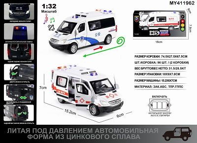 俄文1:24压铸锌合金灯光音效奔驰斯宾公安/救护车车模
