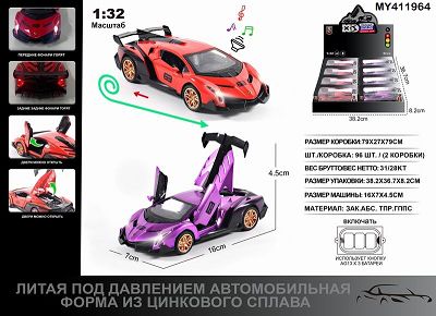 俄文1:32压铸锌合金灯光音效兰博基尼毒药车模 8只/展示盒