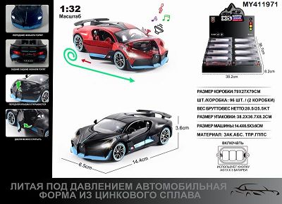 俄文1:32压铸锌合金灯光音效布加迪车模 8只/展示盒