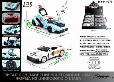 产品名称: 俄文1:32压铸锌合金灯光音效日产GT-R50(赛道涂版)/玛莎拉蒂MC20(海湾版)车模 8只/展示盒