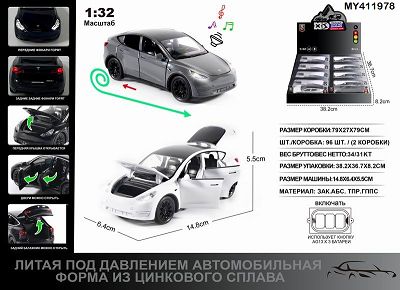 俄文1:24压铸锌合金灯光音效特斯拉 MODLE Y车模 8只/展示盒