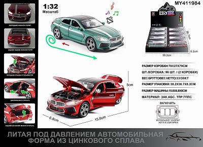 俄文1:24压铸锌合金灯光音效宝马M8车模 8只/展示盒