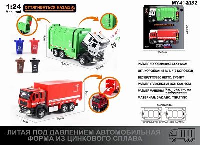 俄文1:24压铸锌合金灯光音效城市运输货柜车+城市环卫车双层套装