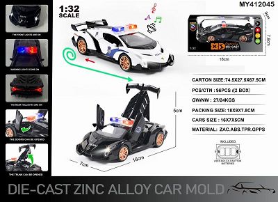 产品名称: 英文1:32压铸锌合金灯光音效兰博基尼毒药警车车模