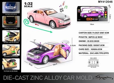 英文1:32压铸锌合金灯光音效劳斯莱斯闪灵车模