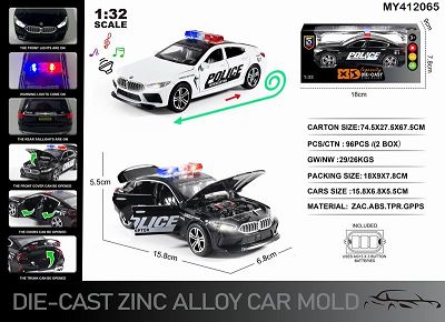 英文1:24压铸锌合金灯光音效宝马M8警车车模