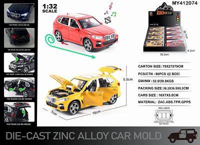 英文1:32压铸锌合金灯光音效宝马X5车模 8只/展示盒