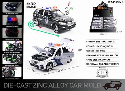 英文1:32压铸锌合金灯光音效宝马X5警车车模 8只/展示盒