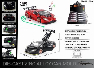产品名称: 英文1:24压铸锌合金灯光音效兰博基尼huracan st evo(街车版)车模 8只/展示盒