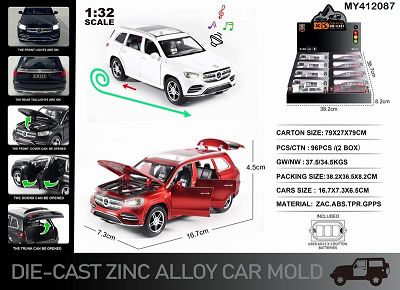 英文1:24压铸锌合金灯光音效奔驰GLS 580车模 8只/展示盒