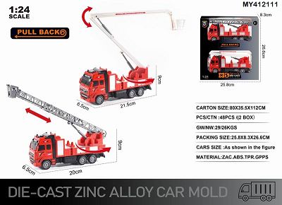 英文1:24压铸锌合金消防云梯车+登高车双层套装