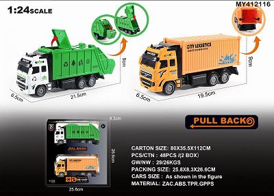 英文1:24压铸锌合金城市环卫车+货柜车双层套装