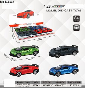 产品名称: 1:28 仿真回力合金三开门布加迪