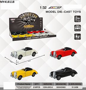 1:32 仿真回力合金车两开门经典老爷车奔驰敞篷 带灯光音乐
