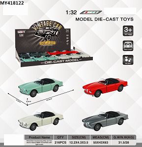 1:32 仿真回力合金车两开门经典老爷车宝马敞篷 带灯光音乐