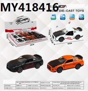 1:32 仿真回力合金车两开门日产GTR带灯光音乐