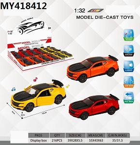 产品名称: 1:32 仿真回力合金车两开门雪佛兰科迈罗带灯光音乐