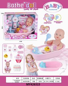 14寸公仔戏水娃娃带浴池,浴球,奶瓶,鸭子