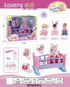 14寸女娃娃配婴儿床会喝水会尿尿带IC