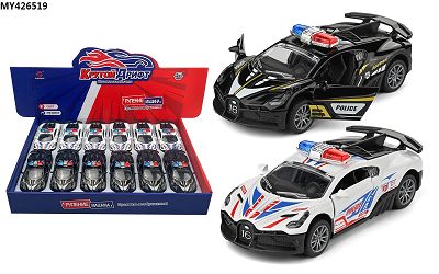 产品名称: 1:32 合金车模 布加迪合金回力开门警车(12只装)
