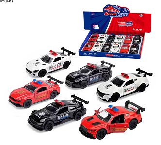产品名称: 1:40福特野马,雪佛兰大黄蜂回力合金警车跑车,门可开,2款6色混装一展示盒 1: 40 Ford Mustang, Chevrolet Bumblebee Return Alloy Police Car Sports Car, Door Openable, 2 6-color Mixed Display Boxes