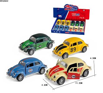1:40甲壳虫回力合金老爷车,门可开,1款4色混装一展示盒