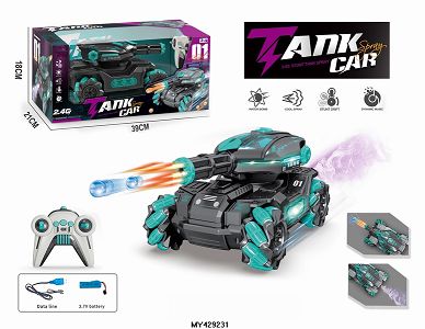 2.4G水弹坦克带喷雾带喷火灯光遥控车 (单遥控,灯光音乐)