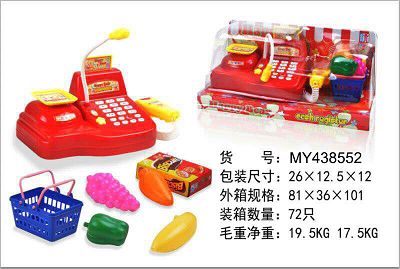 产品名称: P罩盒脚灯光音乐收银台(配篮子,水果)