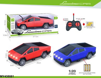 产品名称: 27MHz 1:20四通带车灯喷漆特斯拉赛博皮卡遥控车(不包电)