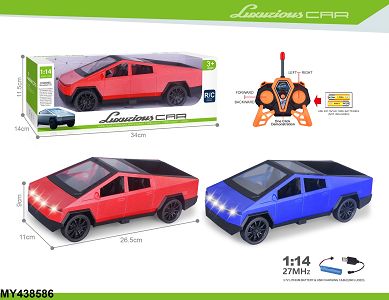27MHz 1:14五通带一键演示车灯喷漆明窗椅座特斯拉赛博皮卡遥控车(包电)