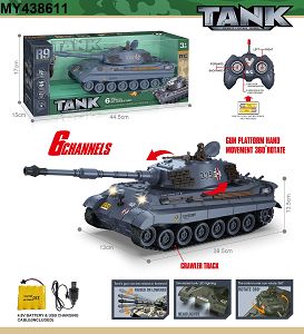 27MHz 六通带灯光声音、一键振动、一键演示遥控履带坦克(包电)
