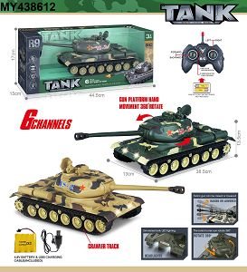 产品名称: 27MHz 六通带灯光声音、一键振动、一键演示遥控履带坦克(包电)