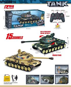 2.4G 十五通带灯光声音、红外线对战、一键演示、炮台可360度遥控旋转、遥控履带坦克(包电)