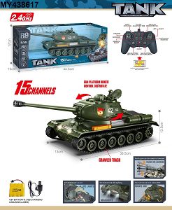 产品名称: 2.4G 十五通带灯光声音、红外线对战、一键演示、炮台可360度遥控旋转、遥控履带坦克(包电)