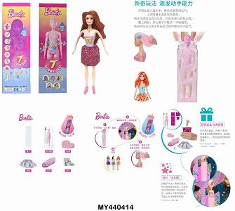产品名称: 第1代11.5寸实身惊喜变色芭比。带5样不同的惊喜配件,娃娃360度旋转,带说明书