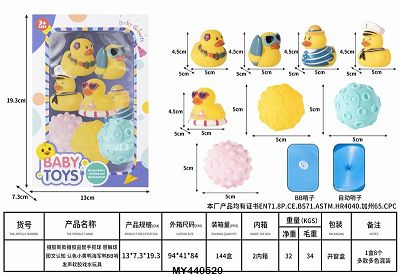 搪胶新款搪胶益智手抓球 认知 认色 感触球 手抓球 小黄鸭 海军鸭 捏捏乐 BB哨 发声 软胶 「1盒8只」