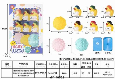 搪胶新款搪胶益智手抓球 认知 认色 感触球 手抓球 小黄鸭 运动鸭 捏捏乐 BB哨 发声 软胶 「1盒9只」