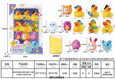 产品名称: 搪胶新款搪胶益智小黄鸭 海盗鸭 小精灵 BB哨 发声 软胶 戏水玩具 捏捏乐 「1盒12只」