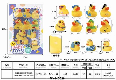 搪胶新款搪胶益智小黄鸭 海军鸭 海盗鸭 BB哨 发声 软胶 戏水玩具 捏捏乐 「1盒11只」