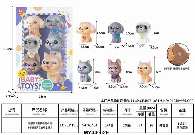 搪胶新款搪胶益智萌宠小狗 BB哨 发声 软胶 戏水玩具 捏捏乐 「1盒6只」