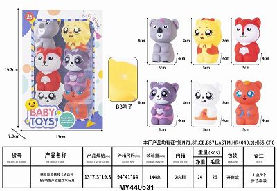 产品名称: 搪胶新款搪胶益智卡通动物 BB哨 发声 软胶 戏水玩具 捏捏乐 「1盒6只」