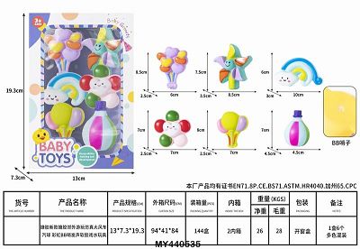 产品名称: 搪胶新款搪胶益智郊外游玩仿真大风车 汽球 彩虹 BB哨 发声 软胶 戏水玩具 捏捏乐 「1盒6只」