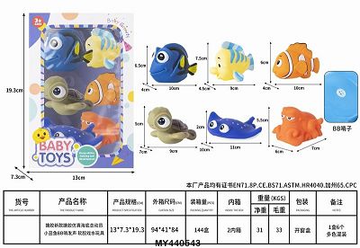 搪胶新款搪胶益智仿真海底总动员 小丑鱼 海龟 BB哨 发声 软胶 戏水玩具 捏捏乐 「1盒6只」