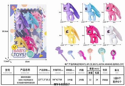 搪胶新款搪胶仿真小马宝莉 值发马 毛马 加配件(梳 镜 发夹) 摆件 软胶玩具 「1盒6只」