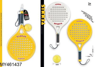 黄色白色防脱手PP板式网球拍*2+PU球*1