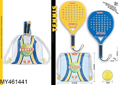 黄色蓝色防脱手ABS板式网球拍*2+PU球*1+收纳背包*1