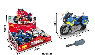 DIY惯性拆装摩托(铁骑)蓝/白2色,带灯光声音